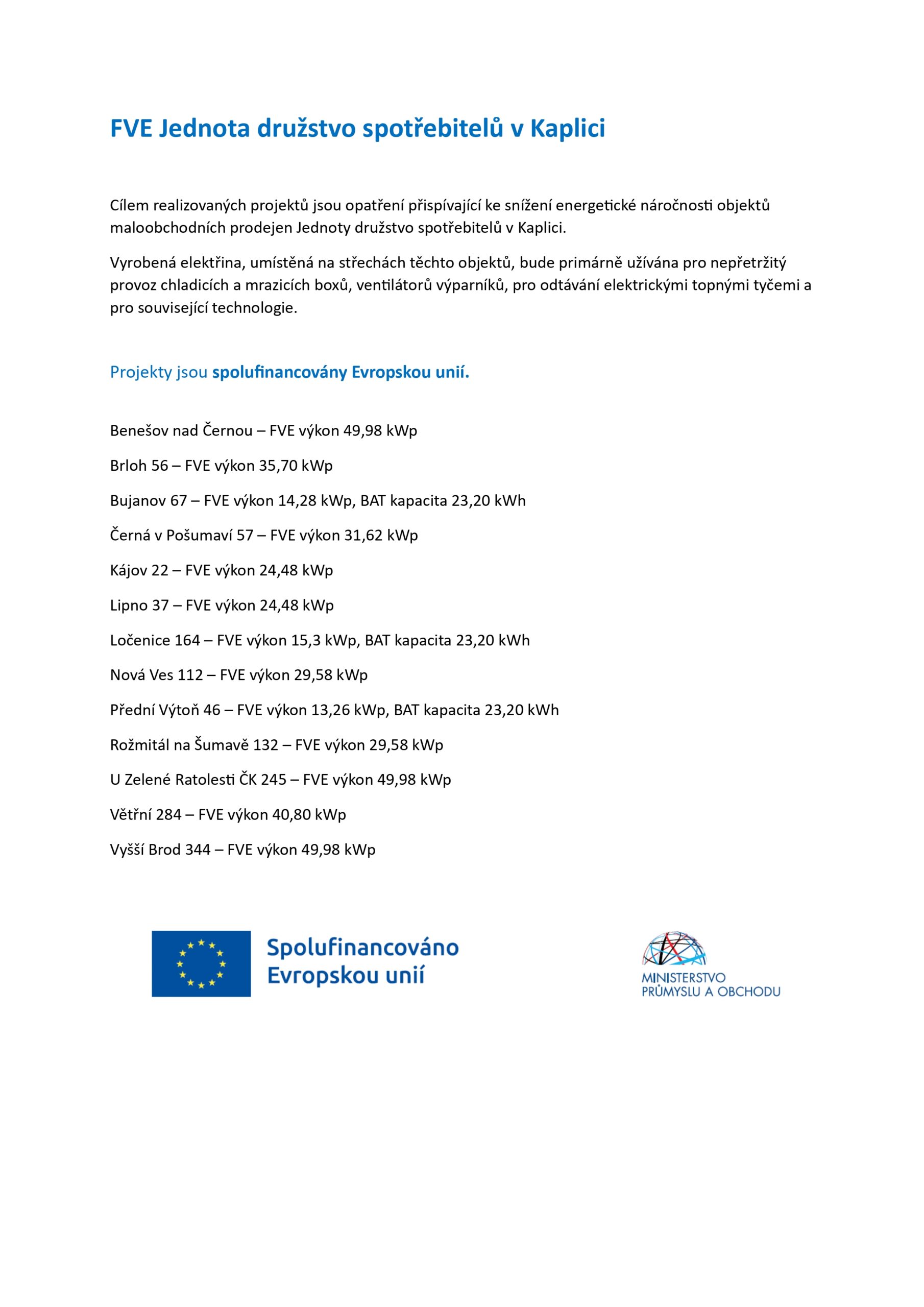- FVE Jednota družstvo spotřebitelů v Kaplici