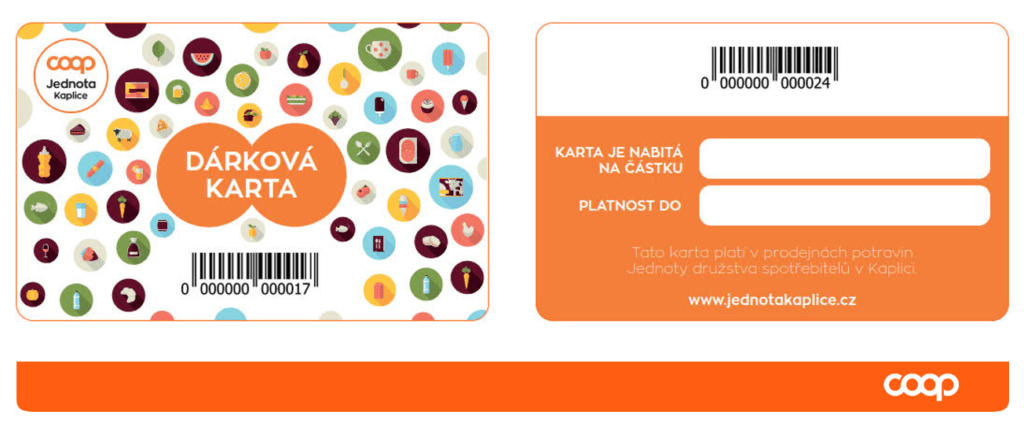 - Dárkové karty získáte ve všech prodejnách Jednoty Kaplice.